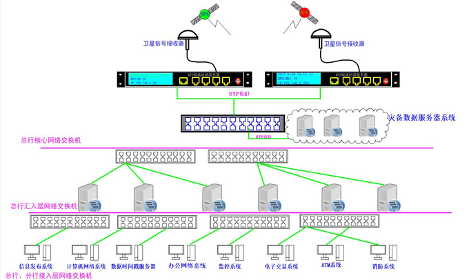 時(shí)間管理系統(tǒng)即通過(guò)權(quán)威的、有效的、精確的授時(shí)系統(tǒng)來(lái)為銀行、證券、保險(xiǎn)等金融系統(tǒng)內(nèi)成千上萬(wàn)臺(tái)數(shù)據(jù)服務(wù)器、辦公電腦、電子交易、視頻監(jiān)控、ATM自助去存取款機(jī)、門禁安保等網(wǎng)絡(luò)系統(tǒng)統(tǒng)一的、標(biāo)準(zhǔn)的、有效的、不可修改的時(shí)間戳信息,并形成交易大數(shù)據(jù)保存到數(shù)據(jù)機(jī)房信息災(zāi)備中心備案待查;